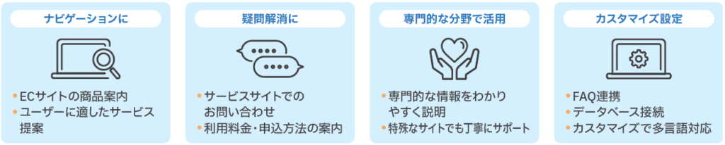 AIチャットボットは、業種や目的に応じて多彩な使い方が可能です。
