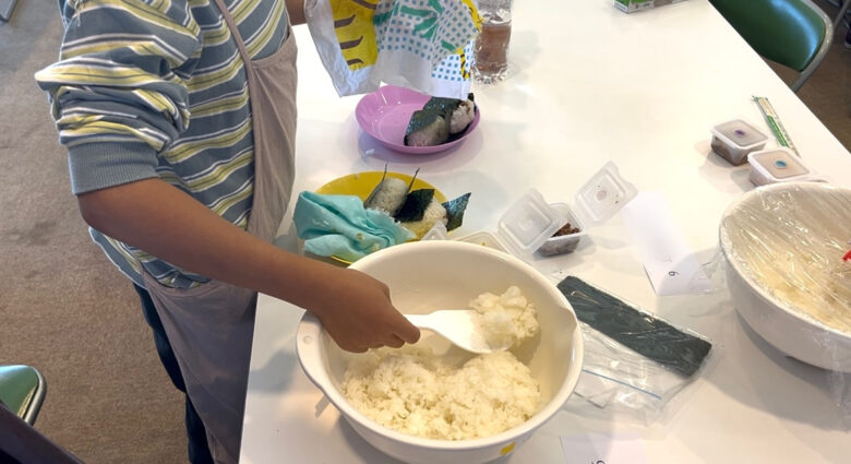 最後は、自分たちが収穫したお米でおにぎり作り。精米したてのお米は香りがよく、ほかほかのおにぎりはとても美味しかったです。用意していただいたおにぎりの具がどれも美味しすぎて何個でも食べられそうでした^_^