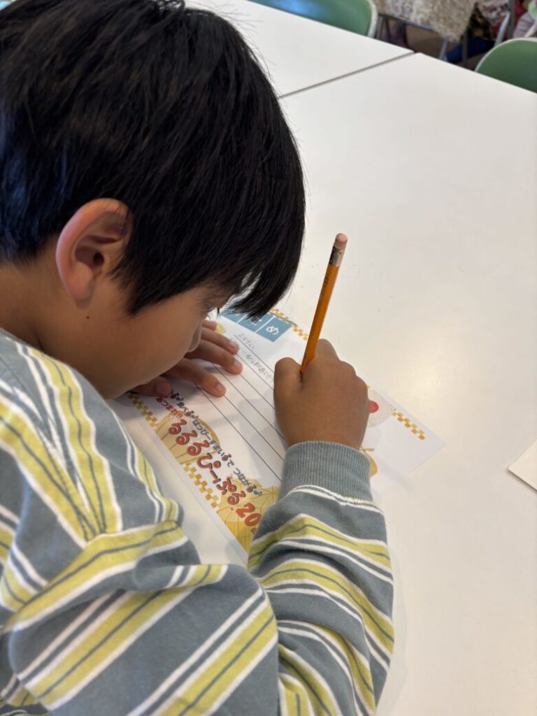 おにぎり作りの後は、お米を「贈る」相手に向けてお手紙を書く時間もあり、子どもたちが一生懸命に言葉を考えながら手紙を書いている姿がとても微笑ましく感じられました。